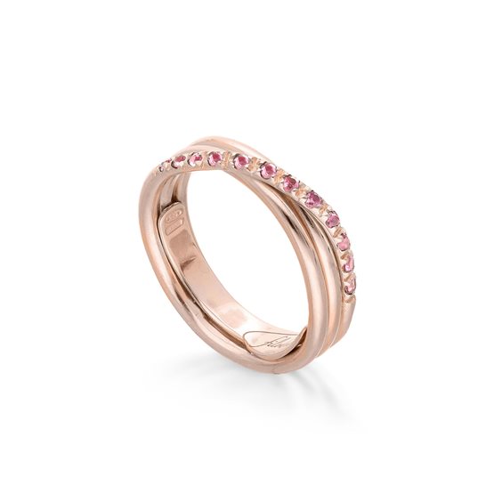 Anello FilodellaVita Prezioso Collection 3 Fili Oro Rosa 9 Kt con 12 Zaffiri Rosa ct tot 0,30