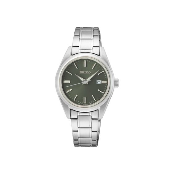 L'orologio SUR533P1 della collezione CLASSIC sedurrà coloro alla ricerca di un segnatempo semplice ed elegante, con il suo diametro di 29,8 mm. Interamente in acciaio inossidabile contiene un calibro al quarzo a 3 sfere estremamente preciso. Il quadrante verde presenta un datario a ore 3 ed è protetto da un vetro zaffiro antigraffio.