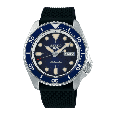 Semplicità e comfort nei modelli Seiko 5 sport. Suits Diametro di cassa 42.5mm. spessore ridotto al minimo per contenere lo spettacolare movimento 4R36, 24 rubini 21600 alternanze ora,riserva di carica di oltre 41ore.lunetta in acciaio girevole unidirezionale con trattamento IP colorato blu, perfetto in ogni occasione, adatto a qualsiasi polso. D, puoi divertirti ad applicare bracciali in gomma, acciaio o tessuto "nato", -multi resistente. Fondello avvitato con vista movimento, vetro Hardlex ad alta resistenza, indici e sfere con lumibrite per una visione notturna. Corona a pressione con funzioni carica/cambio data/fermo macchina. Seiko 5 sport: le cinque caratteristiche della linea: movimento automatico/visualizzazione giorno e data/wr. 10bar/corona a ore 4/cassa e bracciale costruiti per resistere e durare.