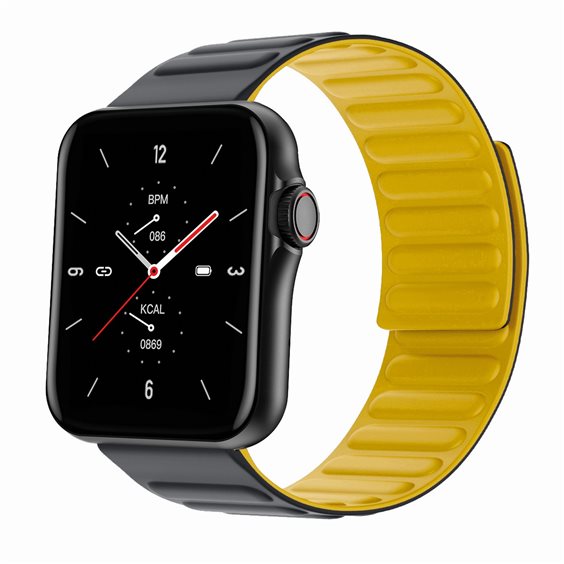 – Cassa rettangolare in metallo nero – Cinturino silicone nero e giallo con chiusura magnetica – Resistenza all’acqua IP68: 1ATM – Tempo standby 20 giorni – Compatibile con Android 5.0 / IOS 9.0 o versioni successive – Caricabatterie: SI – Portata Bluetooth fino a 10 metri FUNZIONE OROLGIO: cambio foto schermo, foto personalizzate, luminosità schermo, impostazione sveglia, timer, cronografo, accensione schermo con rotazione, meteo. FUNZIONI BENESSERE: ossigeno, controllo del sonno, cardio frequenza, promemoria ciclo/ovulazione FUNZIONI SPORT: contapassi, rileva percorso, promemoria acqua, consumo calorie, battiti per minuto. FUNZIONI CELLULARE: chiamata bluetooth, notifica messaggi, anti abbandono telefono, controllo della musica