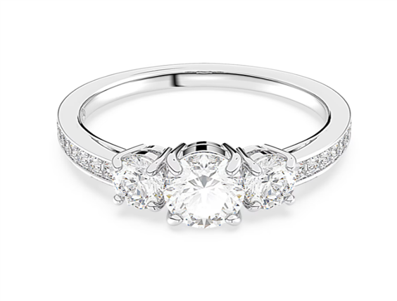 Adatta ad ogni occasione, la famiglia Stilla Attract evoca una disinvolta eleganza. Questo anello classico irradia una luce straordinaria grazie ai cristalli trasparenti e ad un trio di Swarovski Zirconia dal taglio di precisione montati su una brillante finitura color argento. Un bellissimo gioiello per tutti i giorni che può essere facilmente abbinato ad altri pezzi della famiglia Stilla Attract.