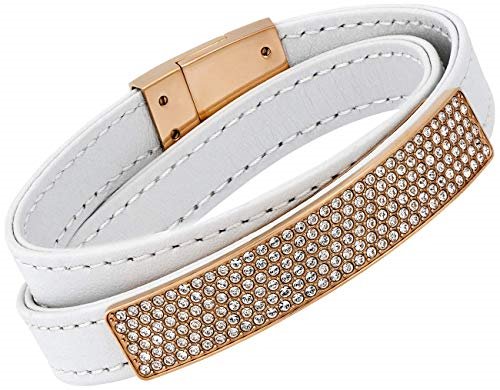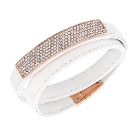 Bracciale Swarovski Vio in pelle bianca doppio giro con piastra emtallica rodiata rosa e cristalli pavé Swarovski (36cm)