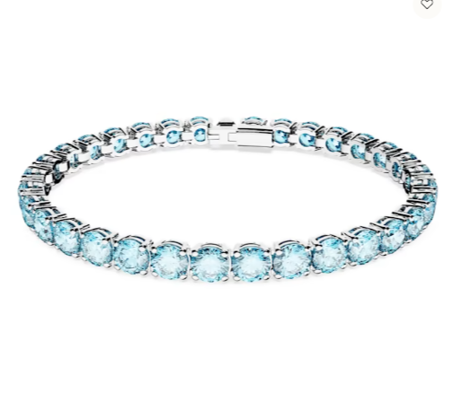 Avvolgi il polso con gioielli vivaci con questo bracciale scintillante della famiglia Matrix Tennis. Il design perfettamente fluido presenta una fila di pietre rotonde color acquamarina chiaro abbinate ad una montatura placcata rodio. Indossalo da solo o insieme ad altri gioielli della famiglia Matrix Tennis. Articolo nr.: 5648928 Collezione: Matrix Tennis Colore: Blu Lunghezza: 16.5 cm Larghezza: 0.5 cm Materiale: Placcatura rodio, Zirconia Tipo di fermaglio: Chiusura a incastro con fermaglio di sicurezza