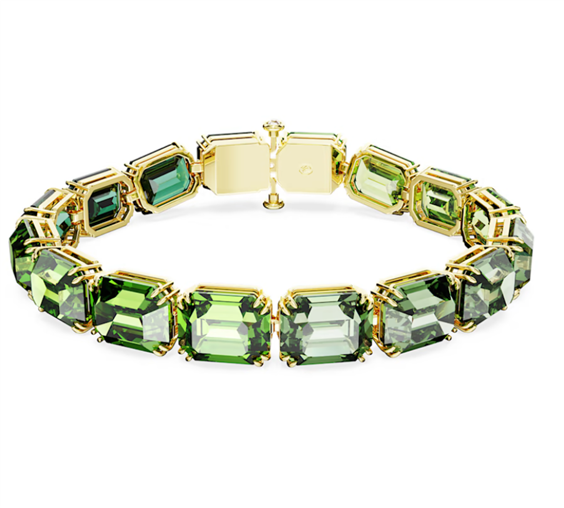 Questo incantevole bracciale Millenia con le sue molteplici e sfavillanti sfumature verdi impreziosirà qualsiasi look. Il design placcato color oro presenta una fila interamente articolata di cristalli ottagonali e ogni pietra evidenzia la maestria di Swarovski nella tecnica di montatura a griffe doppia e la straordinaria vivacità di colori celebrata dalla famiglia Millenia. Il gioiello perfetto per te. Articolo nr.: 5671258 Collezione: Millenia Colore: Verde Lunghezza (minima - massima): 17 - 19 cm Ampiezza: 0.9 cm Materiale: Cristalli, Placcato color oro Tipo di fermaglio: Chiusura con gancio a W