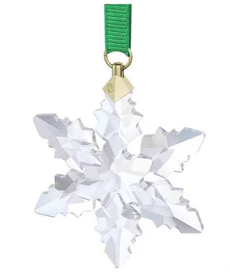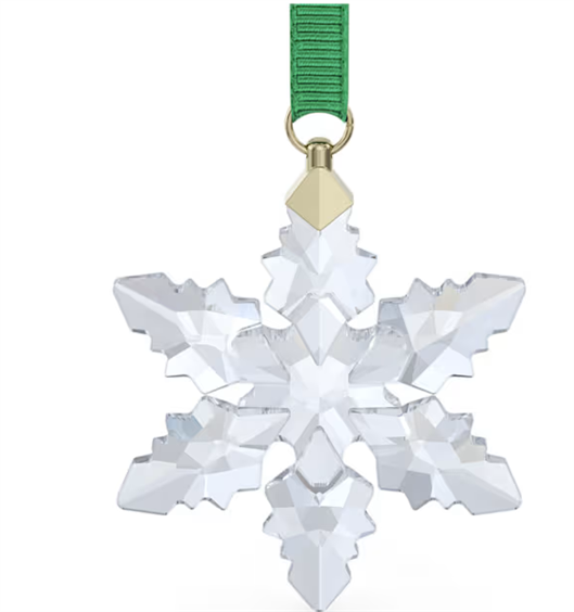 La nostra amatissima tradizione di Annual Edition Decorazioni prosegue nel 2024 con questo scintillante fiocco di neve. Finemente realizzato con 133 sfaccettature e sospeso su un nastro gros-grain verde, questo design trasparente brillerà luminoso durante tutta la stagione delle. Perfetto da esporre sul tuo albero, in una finestra o insieme ai nostri eleganti Display per Decorazione di Natale o Campana di Vetro. Oggetto decorativo. Non è un giocattolo. Non adatto ai bambini di età inferiore a 15 anni. Articolo nr.: 5673430 Collezione: Annual Edition Dimensione: 5.3 x 0.8 x 3.9 cm Designer: Michele Blasilli Materiale: Cristalli, Poliestere, Metallo finitura tono dorato champagne Colore: Bianco