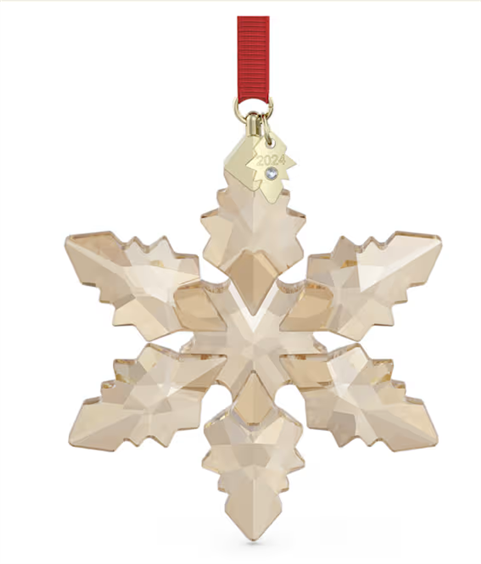 La nostra amatissima tradizione delle Annual Edition Decorazioni prosegue nel 2024 con questo meraviglioso fiocco di neve. Finemente realizzato con 133 sfaccettature, il design in tonalità oro emetterà una calda e confortante luce dorata durante tutta la stagione delle feste. Appeso ad un nastro gros-grain rosso, presenta anche una lucida targhetta in metallo in tonalità oro champagne che reca inciso l’anno ed è impreziosita da un piccolo chaton. Esponilo sul tuo albero, in una finestra o insieme ai nostri eleganti Display per Decorazioni di Natale o alla Campana di Vetro. Oggetto decorativo. Non è un giocattolo. Non adatto ai bambini di età inferiore a 15 anni. Articolo nr.: 5674349 Collezione: Annual Edition Dimensione: 8.4 x 1.3 x 6.6 cm Designer: Michele Blasilli Materiale: Cristalli, Poliestere, Metallo finitura tono dorato champagne Colore: Color oro