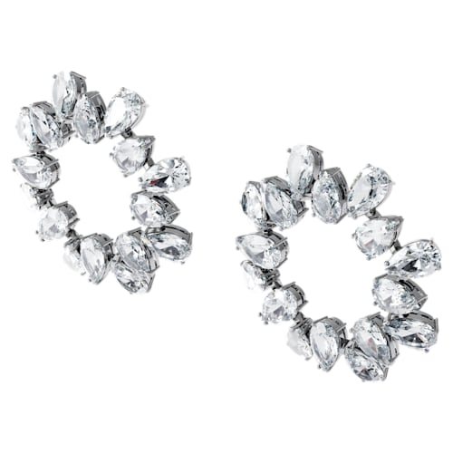 Oggetto scultoreo sensazionale, questi orecchini di cristallo sono genialmente realizzati con cristalli taglio pear trasparenti; li completa una montatura placcata in rodio. Indossati sulle spalle scoperte, questi orecchini di cristallo possono abbinarsi con le collane della famiglia Millenia per un effetto sfavillante, oppure si indossano da soli su un semplice capo nero con scollo a V, per contrasto con il design circolare. Questi orecchini sono parte della famiglia Millenia e sono firmati dal Direttore creativo Giovanna Engelbert per la Collection I.