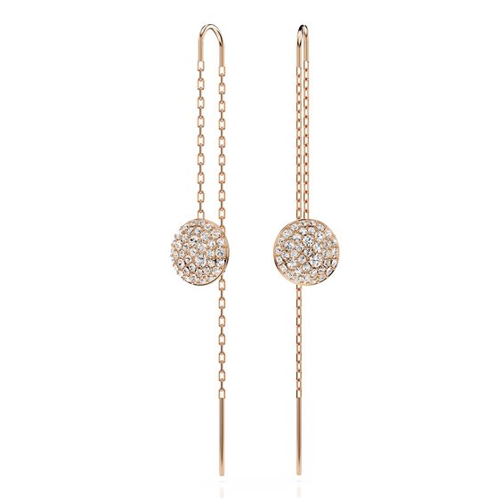 Ispirati al cosmo, questi radiosi orecchini Sublima arricchiranno il tuo stile di un tocco di meraviglia. Ciascun orecchino placcato color oro rosa presenta una catena pendente su ciascun lato, con un motivo a cupola a forma di meteora, splendidamente impreziosito da cristalli Cry rotondi. Un modo semplice di inondare di luce il tuo look. Articolo nr.: 5689427 Collezione: Sublima Dimensione: 6.8 x 1 cm Materiale: Cristalli, Placcato color oro rosa Colore: Bianco Peso (singolo oggetto): 0.8 g