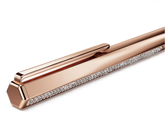 Questa penna a sfera di squisita fattura, che coniuga eleganza e moderna sobrietà, è stata realizzata per conferire un tocco di brillantezza alla tua creatività. L’originale design della sua silhouette placcata color oro rosa è caratterizzato da un fusto ottagonale e da una punta rotonda ed esalta alla perfezione l’equilibrio tra forma e funzionalità. La penna è impreziosita da Ultra Fine Crystal Rocks, che rifletteranno meravigliosi tocchi di luce ad ogni parola che scriverai. L’aggiunta di una clip e di un meccanismo a rotazione di facile utilizzo ne elevano ulteriormente lo stile. Questa luccicante penna a sfera sarà una splendida idea regalo per ogni occasione speciale. Articolo nr.: 5678182 Collezione: Crystal Shimmer Dimensione: 14.5 x 1 cm Materiale: Cristalli, Placcato color oro rosa Colore: Color oro rosa