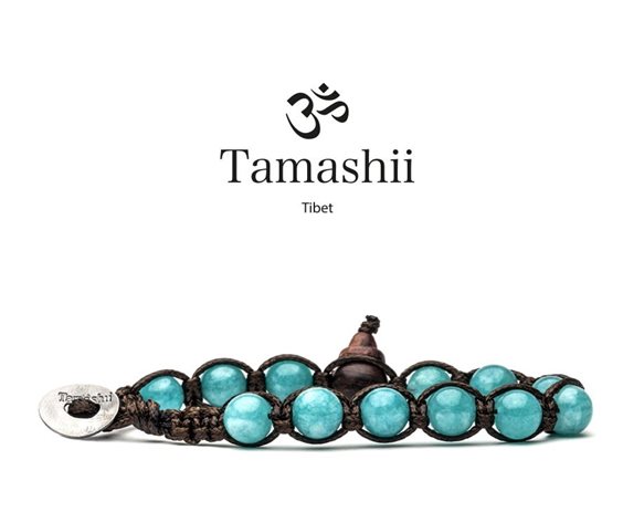 Tamashii (o Shamballa) è un bracciale utilizzato dai monaci tibetani per favorire la meditazione, per le pratiche religiose e come talismano. Infatti Tamashii significa “anima” e il termine deriva da "tama" che significa “gioiello”, quindi “gioiello dell’anima”. Chi lo indossa persegue un ideale di pace e di amore verso se stesso e verso il mondo, il bracciale aiuta a proteggere la sua anima, a farla crescere e farle trovare un ruolo ed un senso all'interno della vita. Prodotto realizzato in Tibet e benedetto da monaci buddisti. Gli antichi cinesi della dinastia degli Han orientali, nel loro primo dizionario, definirono la giada (yu) come “la pietra più bella”. Tra le numerose proprietà di questa pietra, nella variante verde acqua, ci sono quella legata alla protezione di bambini e anziani durante i viaggi e quella di sostenere gli amori, per così dire, maturi. Bracciale originale tibetano Tamashii realizzato con pietre naturali GIADA VERDE ACQUA. Misura pietre: 6mm. Unisex e taglia unica (il bracciale è predisposto per adattarsi a qualsiasi diametro di polso). Ogni bracciale è spedito con relativa confezione originale e certificato di garanzia.