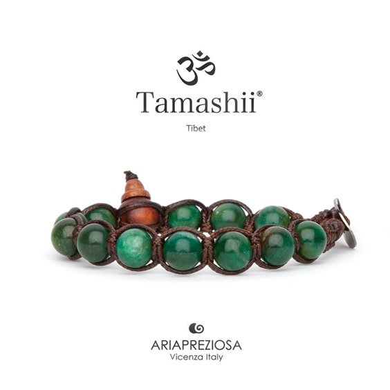 TAMASHII CHLORITE Il nome deriva dal greco “Chloros” che significa verde in riferimento al suo colore. Viene chiamata anche Seraphinite, stimola la meditazione e la preghiera. Favorisce la serenità aiutando l’individuo a vedere i propri conflitti in maniera più chiara. In relazione al colore verde che simboleggia equilibrio ed armonia vogliamo ricordare la Dea Arya Tara, la divinità più importante del Buddhismo dispensatrice della compassione universale. Bracciale unisex originale Tibetano Tamashii® realizzato con pietra naturale Chlorite e cordoncino marrone. Misura pietre: 8 mm Taglia unica: il bracciale è predisposto per adattarsi a qualsiasi polso grazie alle asole già presenti (dove verrà infilato il bottone), una volta scelta la misura si può tagliere il cordoncino. Ogni bracciale è confezionato all'interno del packaging originale Tamashii® con dichiarazione di autenticità e garanzia.