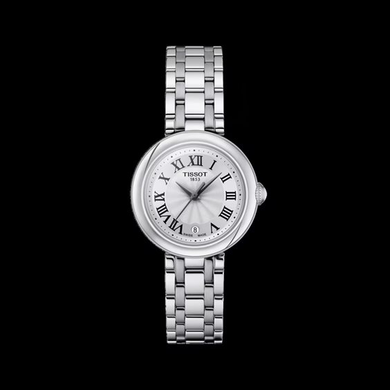 Il Tissot Bellissima Small Lady colpisce per il suo design elegante e per i bellissimi dettagli. Questo modello ha un movimento al quarzo Swiss-Made e un vetro zaffiro antigraffio con numeri romani e datario. La cassa in acciaio inossidabile 316L racchiude il quadrante bianco e il bracciale in acciaio inossidabile 316L con chiusura a farfalla con pulsanti.