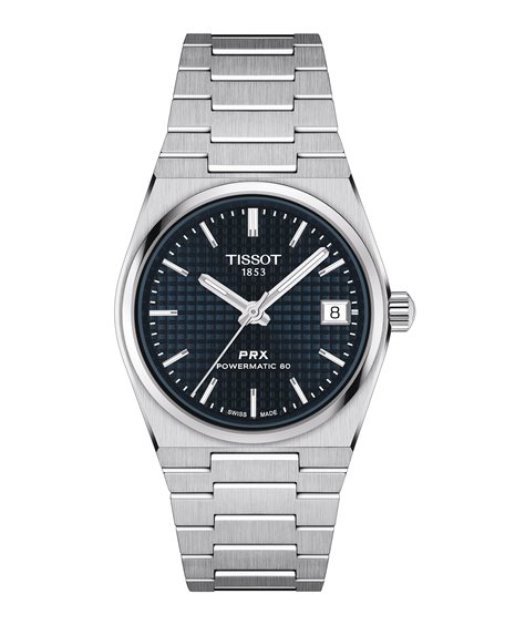 Tissot PRX 35mm Powermatic 80, un perfetto equilibrio tra fascino senza tempo e artigianato moderno. Questo orologio da 35 mm vanta una cassa in acciaio di alta qualità e un accattivante quadrante blu, ispirato al suo famoso predecessore del 1978. Il caratteristico motivo del quadrante waffle aggiunge un ulteriore livello di eleganza al modello automatico. Resistente all'acqua fino a 100 metri e dotato di spirale Nivachron™, il PRX è la scelta ideale per gli esperti di stile. Il bracciale in acciaio satinato con chiusura déployante a tripla lama in acciaio garantisce comfort per tutto il giorno . Distinguiti con il Tissot PRX 35mm Powermatic 80 in blu. Il regalo perfetto per la donna di classe che ama il vintage e i segnatempo con bracciale integrato.