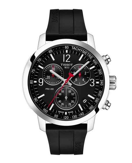 TISSOT PRC 200 CHRONOGRAPH UN MUST-HAVE CLASSICO E SPORTIVO! LA FAMIGLIA DI OROLOGI TISSOT PRC 200 È TRA LE PIÙ VENDUTE IN SENO ALLA COLLEZIONE TISSOT. Il design del PRC 200 sfoggia una lunetta ridotta, facendo apparire il quadrante molto grande e contribuendo a conferire all’orologio un look moderno e a facilitare la lettura dell’ora. L’orologio è inoltre impermeabile fino a 20 bar (200 m/660 piedi) ed è dotato di tachimetro, fondello e corona a vite.