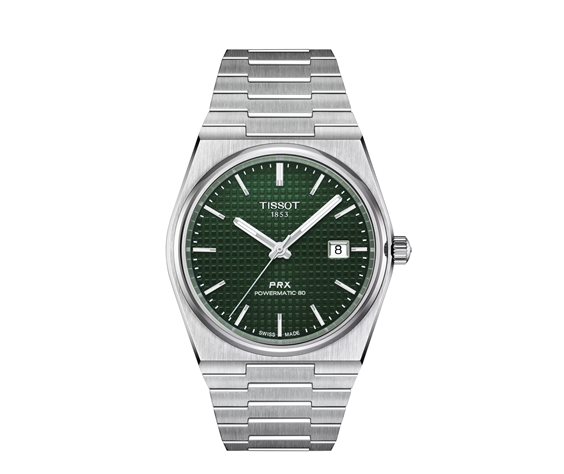Tissot ripropone un design iconico della fine degli anni '70, con cassa e bracciale integrati. La cassa del Tissot PRX Powermatic 80 misura 40 mm di diametro. Ha una linea leggermente a botte e ospita una lunetta liscia, sottile e rotonda. Il movimento del Prx automatico è un Tissot Powermatic 80 che offre 80 ore riserva di carica.