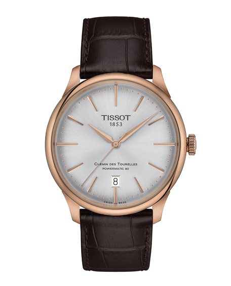 Chiudi gli occhi e pensa ad un classico orologio svizzero e vedrai solamente Tissot Chemin des Tourelles. Prende il nome dalla strada che conduce alla sede di Tissot tra le montagne svizzere, è l'icona del brand: rotondo, classico, meccanico, senza età. Ora aggiornata e raffinata, questa edizione ha un vetro zaffiro delicatamente bombato che si trova su un quadrante a raggio di sole morbido con indici semplici ed eleganti, ciascuno sfaccettato per catturare la luce in modo sobrio ma sofisticato. Il movimento è Nivachron Powermatic 80, un movimento meccanico automatico all'avanguardia con una riserva di carica di 80 ore e un elevato antimagnetismo. Un orologio per tutti i tempi.