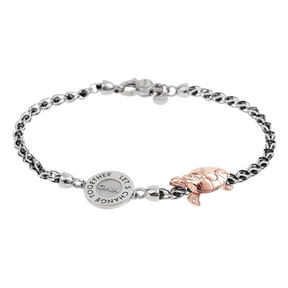 BRACCIALE GAIA IN ARGENTO BRUNITO CON CATENA A GOCCIA SPINELLO, MEDAGLIA E TARTARUGA GAIA IN ORO ROSA 9KT