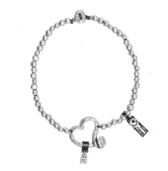 Donna collana girocollo in lega di metallo argentato con un cuore e una chiave per aprire il lucchetto. Come tutti i gioielli del marchio, è stato realizzato a mano in Spagna.