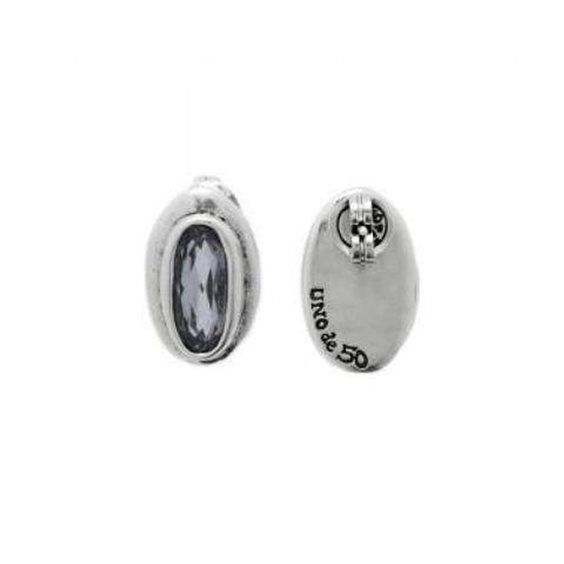 Orecchini Uno de 50 in lega metallica rodiata argento, con inserto centrale di cristalli di colore grigio.