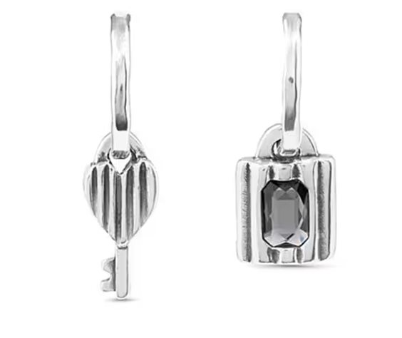 Pendenti da donna di Unode50 della collezione Confident. Gioiello realizzato in argento, metallo e cristallo sfaccettato di colore grigio