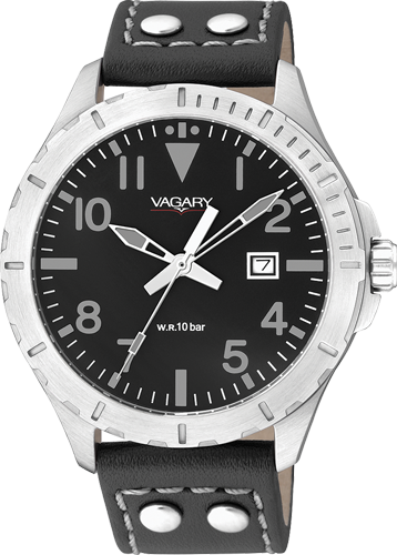 •OROLOGIO VAGARY AQUA39 by CITIZEN •Movimento Citizen Cal. 1112, Tempo con datario •Cassa in acciaio 316L da 42 mm escluso corona • Cinturino in pelle •Indici e sfere ad alta visibilità •Vetro minerale •Fondello serrato a vite. WR 10 bar