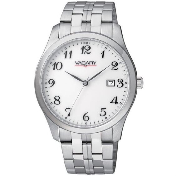 Orologio Vagary solo tempo, Movimento a quarzo. Cassa e fondello acciaio. Datario, Quadrante Bianco, Cinturino in Acciaio. Resistente all'Acqua 5 Atm. Vetro Minerale.