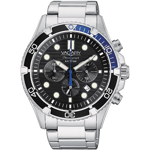 Movimento al quarzo Citizen, cal. 0510. Cronografo. Cassa in acciaio con fondello e corona serrati a vite. Ghiera girevole unidirezionale. Bracciale in acciaio con chiusura di sicurezza. WR 10 bar. Diametro cassa 43 mm.