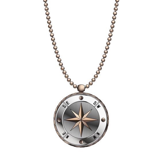 COLLANA IN ACCIAIO 316L - CIONDOLO ROTONDO CON ROSA DEI VENTI