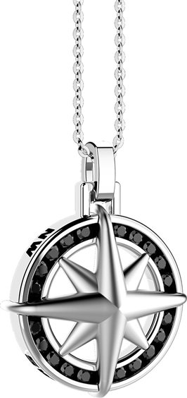 Girocollo argento con pendente rosa dei venti e spinello nero,lunghezza cm50