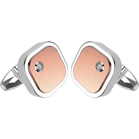 Gemelli Acciaio Bianco e Pvd Rosa e Zirconi Bianchi